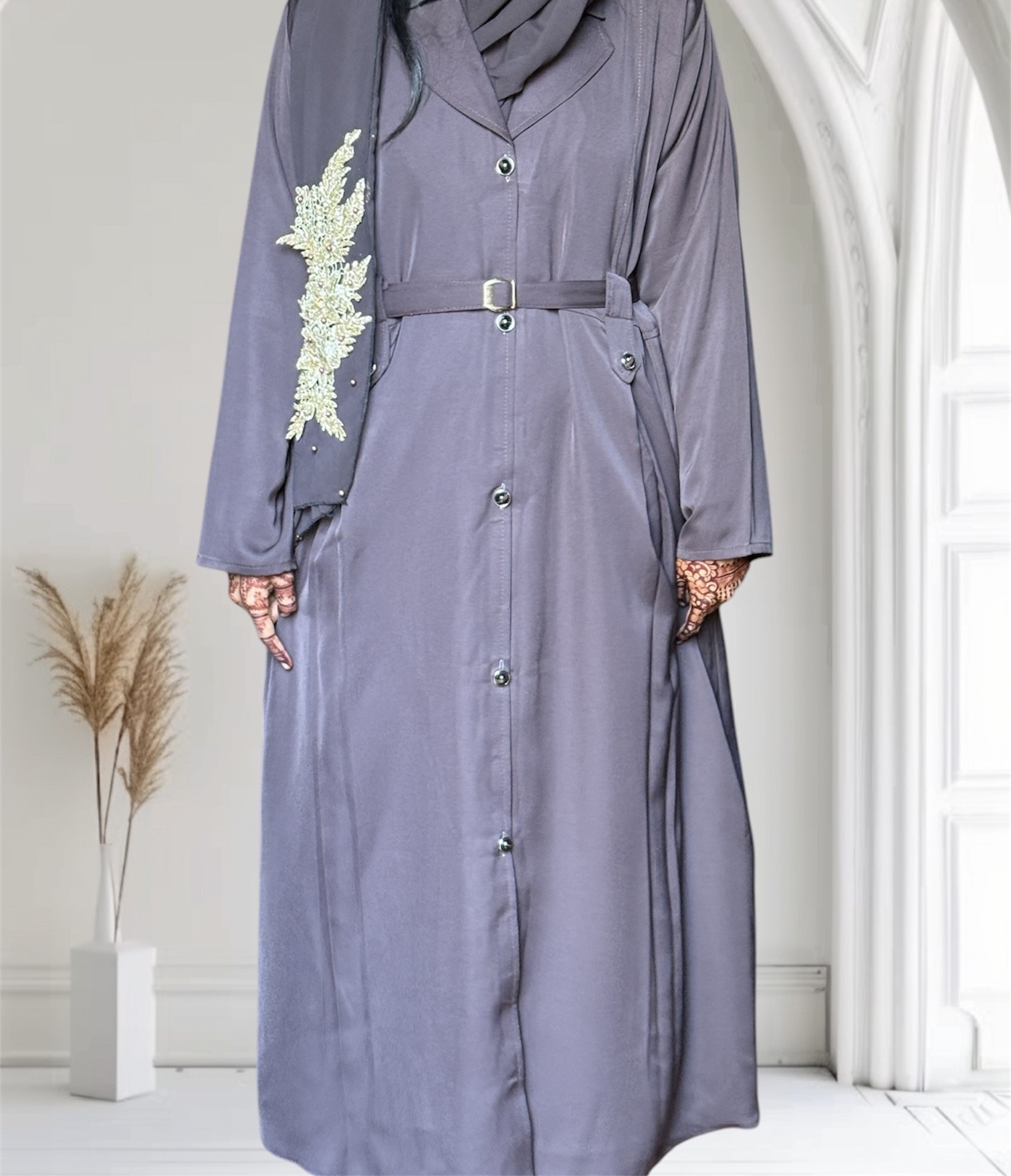 👗 Wear it closed with a matching hijab for an effortlessly elegant modest look.