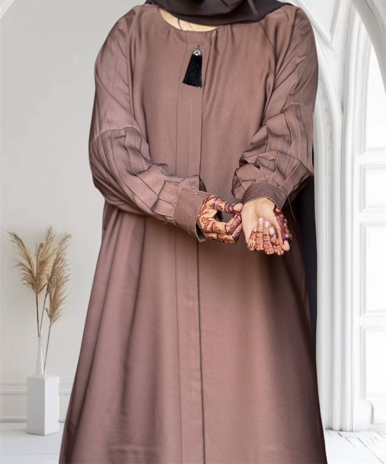 The Turkish Style , Maxi With Plated Sleeves, Abaya is more than just a piece of clothing—it is a symbol of elegance, tradition, and confidence. Designed for modern modest fashion lovers, this abaya offers graceful draping, sophisticated detailing, and all-day comfort.